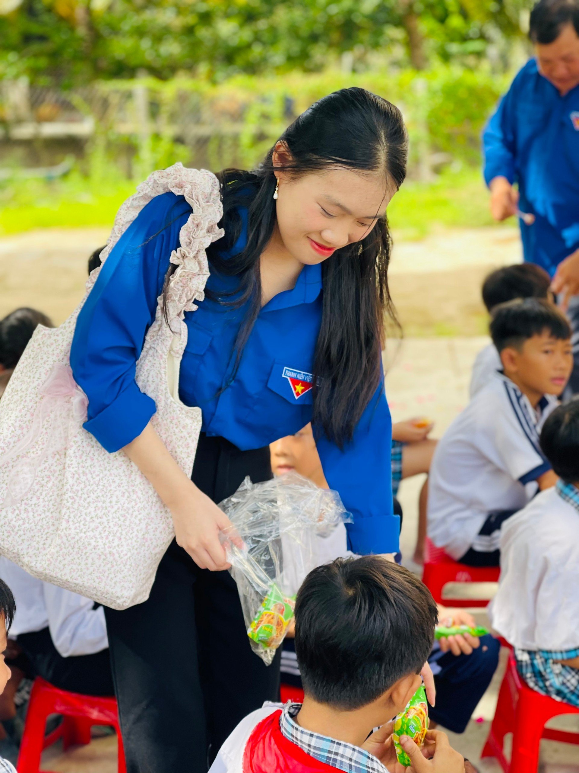 Ảnh: Cán bạn Đoàn viên thanh niên tặng bánh kẹo cho các em thiếu nhi