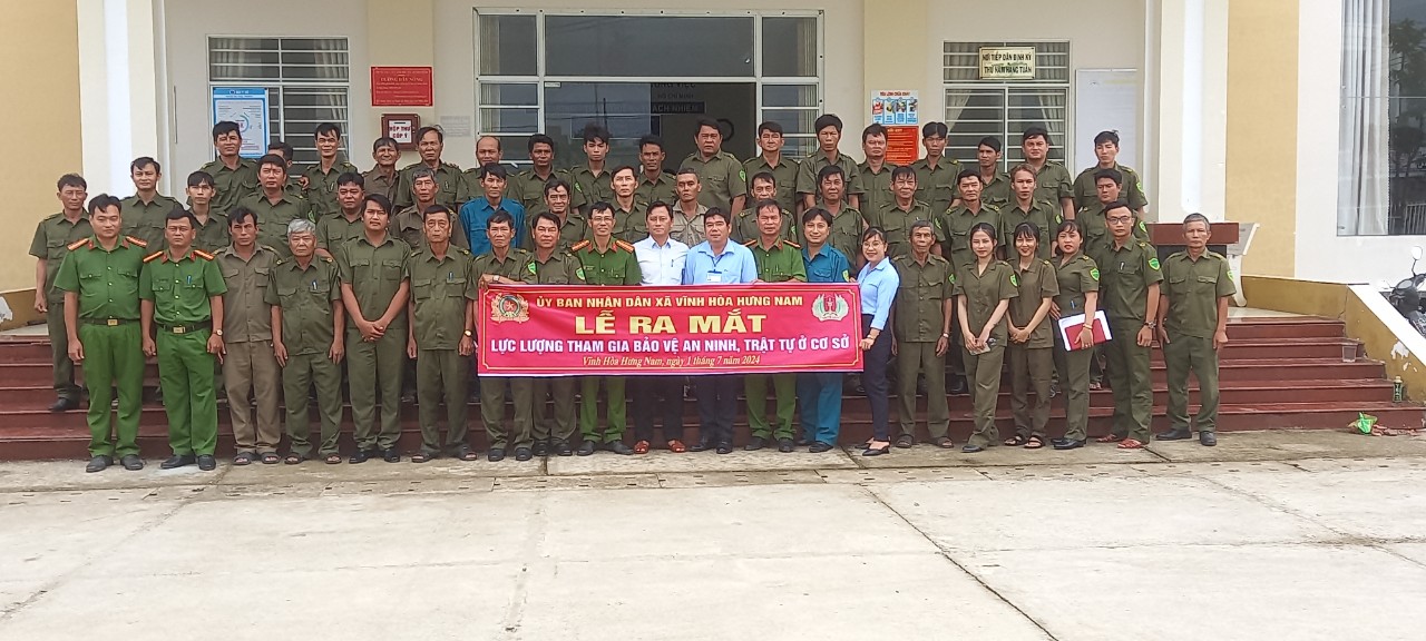 Sáng nay 01/7/2024, UBND xã Vĩnh Hòa Hưng Nam tổ chức lễ ra mắt lực lượng tham gia bảo vệ an ninh, trật tự ở cơ sở 12/12 ấp trên địa bàn xã Vĩnh Hòa Hưng Nam.